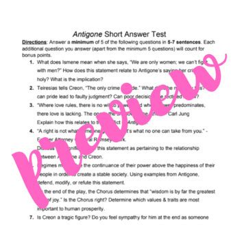 Title: - Antigone Short Answer Test