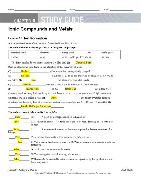 Title: - Ionic Compounds And Metals Study Guide Answers