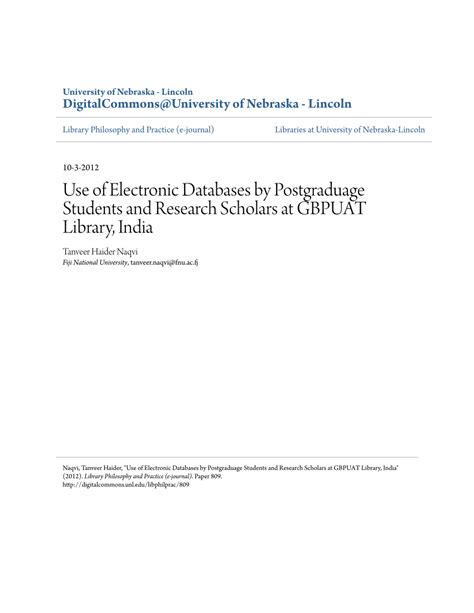 Title: - Use Of Electronic Databases By Postgraduage Students And