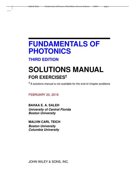 Title: - Fundamentals Of Photonics Instructor Manual